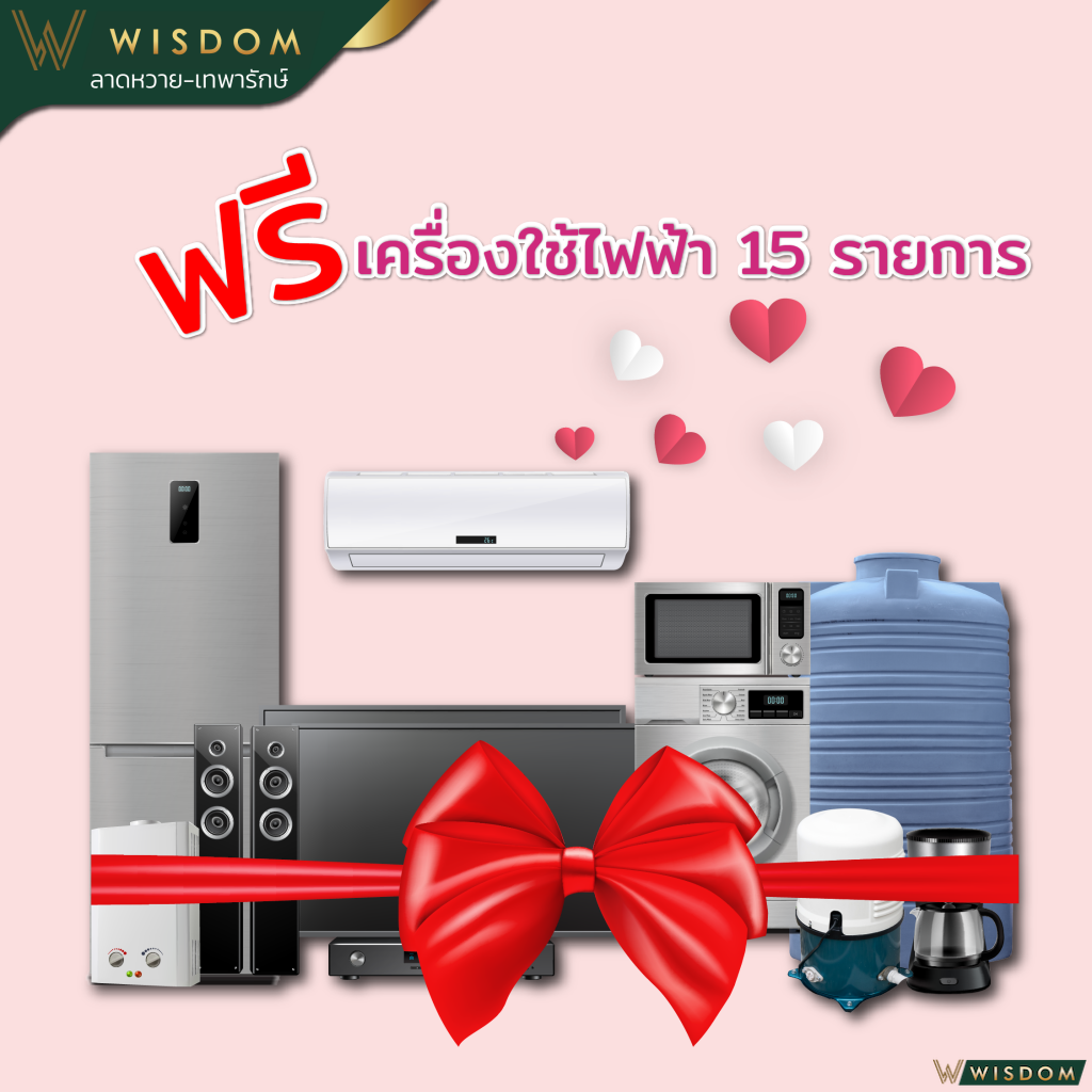 เดือนกุมภาพันธ์เป็นเดือนที่มองไปทางไหนก็เป็นสีชมพู เพราะเดือนกุมภาพันธ์เป็นเดือนแห่งความรัก เป็นเดือนที่มีวันวาเลนไทน์นั่นเอง เพราะเป็นเดือนแห่งความรัก โครงการบ้านเดี่ยววิสดอม ของเราก็อยากมอบของขวัญวาเลนไทน์สำหรับผู้ที่ซื้อบ้านกับเราในเดือนกุมภาพันธ์นี้ ด้วยโปรของแถมสุดพิเศษ จัดไปหนักๆ เครื่องใช้ไฟฟ้าฟรีไปเลย 15 รายการ